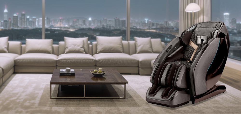 Kyota Hatsumei M900 4D AI Massage Chair - Lifestyle image of brown color from Wish Rock Relaxation