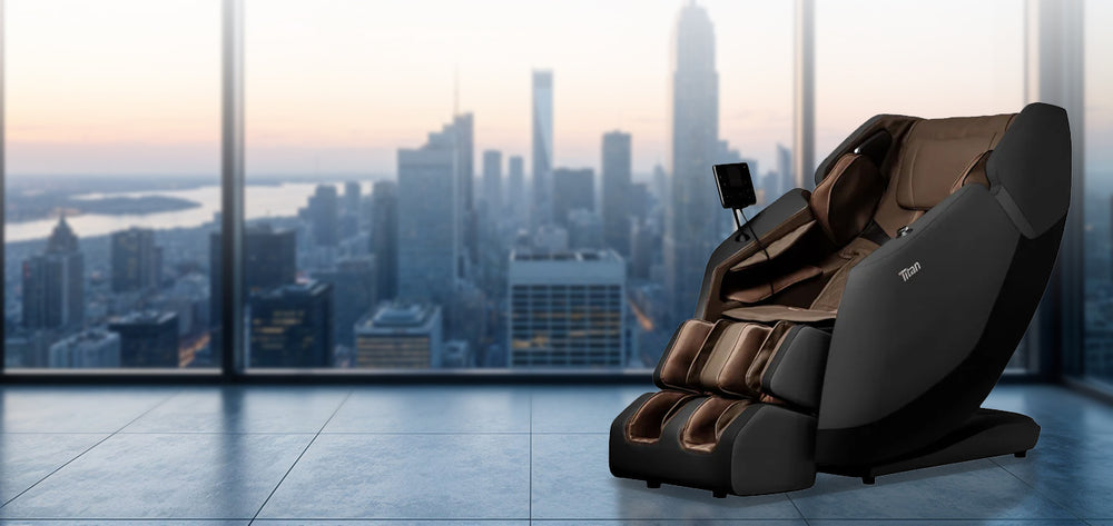 Titan Drift 3D Massage Chair SL-track system glides rollers from neck to hamstrings for full-body massage coverage.