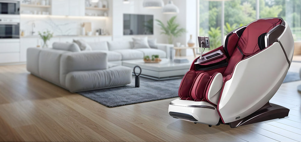 The Osaki Platinum 4D Avalon Massage Chair features Ai HealthPro for real-time wellness insights, Memory Settings, 20 Auto Programs & 11 Manual to suit any preference, Foot + Deep Calf Kneading Rollers for targeted lower body relief & more. Suitable up to 6'1" and 260lbs; 20.1" seat width | 20" shoulder width.
