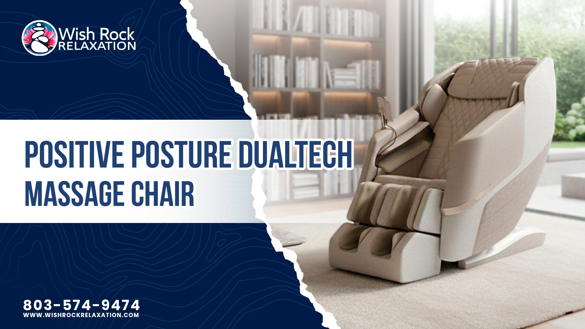 The Positive Posture DualTech 4D Dual Mechanism Massage Chair is engineered to deliver a level of full-body relief that traditional single-track chairs simply can’t match. Its dual massage mechanism design allows the upper system to work the neck, shoulders, and spine with adaptive 4D depth while a second mechanism simultaneously targets the glutes and hamstrings—areas commonly neglected but critical for true recovery. Paired with an extended SL-Track, zero gravity recline, full-body air compression, and extended heat therapy, DualTech is ideal for users who want deeper, more efficient sessions with real lower-body focus.  Also includes a touchscreen tablet and 3" space saver to fit in smaller spaces. Suitable for people up to 6'4" tall and 265 lbs; seat width of 19.5".